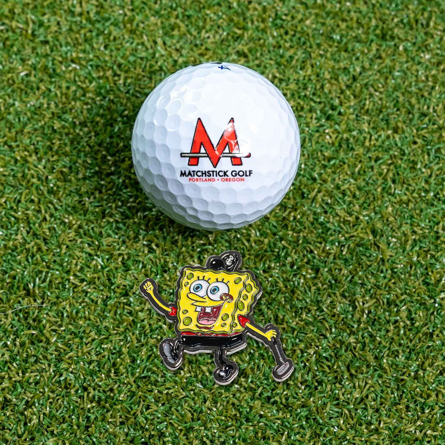 combines the incredible success of the legend Tiger Woods with the wildly popular character Spongebob. In collaboration with Drew Reinland, this golf ball marker offers the best of both worlds. The design, complete with a red jersey and black shorts, is a tribute to Tiger's victory in the 2005 Masters at Augusta.