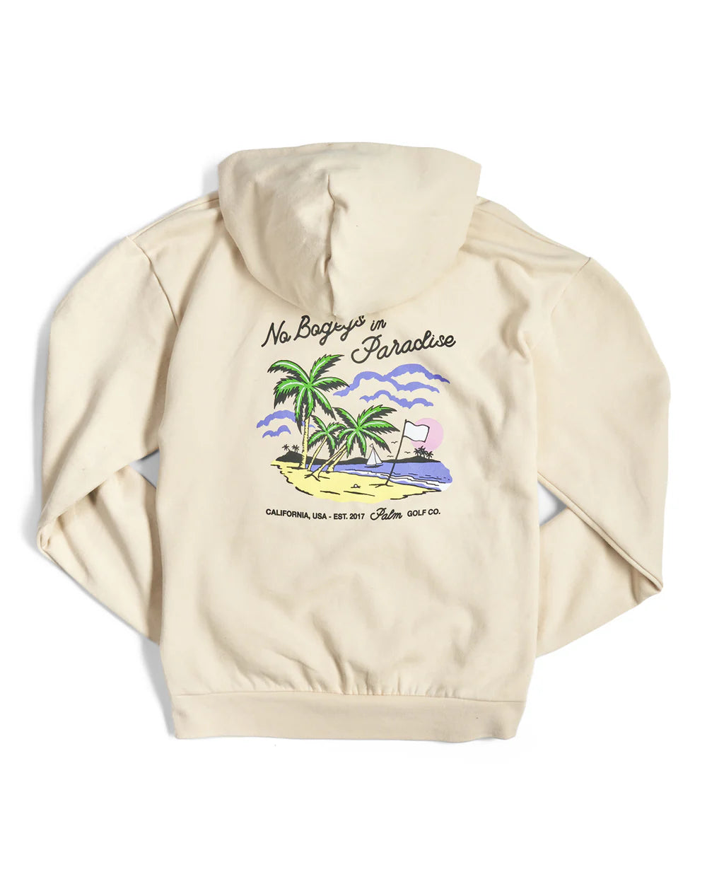PARADISE HOODIE från PALM GOLF CO. är för dig som andas golf – och vet att spelet handlar om mer än bara siffror. Med det djärva budskapet "No bogeys in paradise" tryckt både fram och bak, är den här hoodien mer än bara ett plagg – det är ett statement om hur spelet ska kännas.