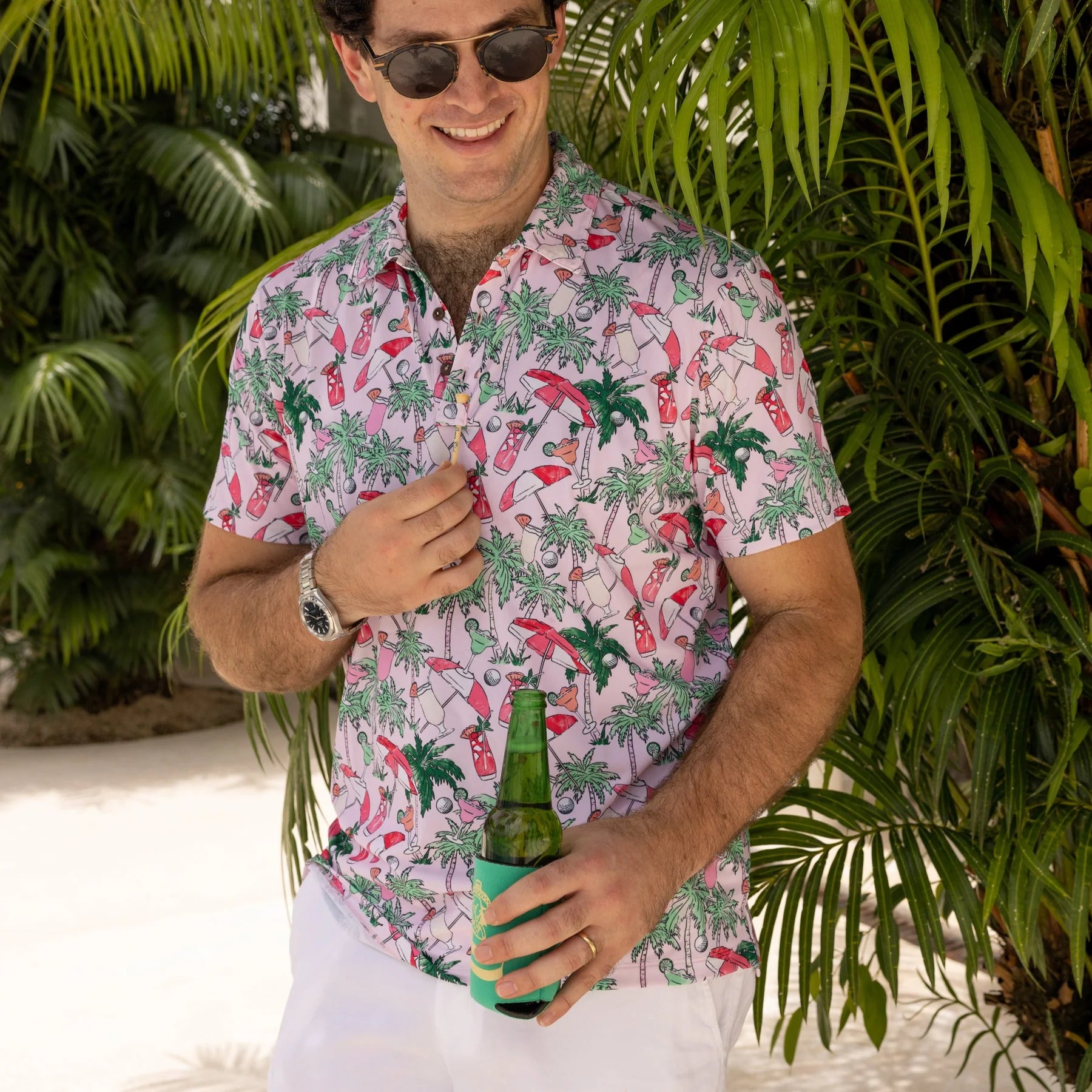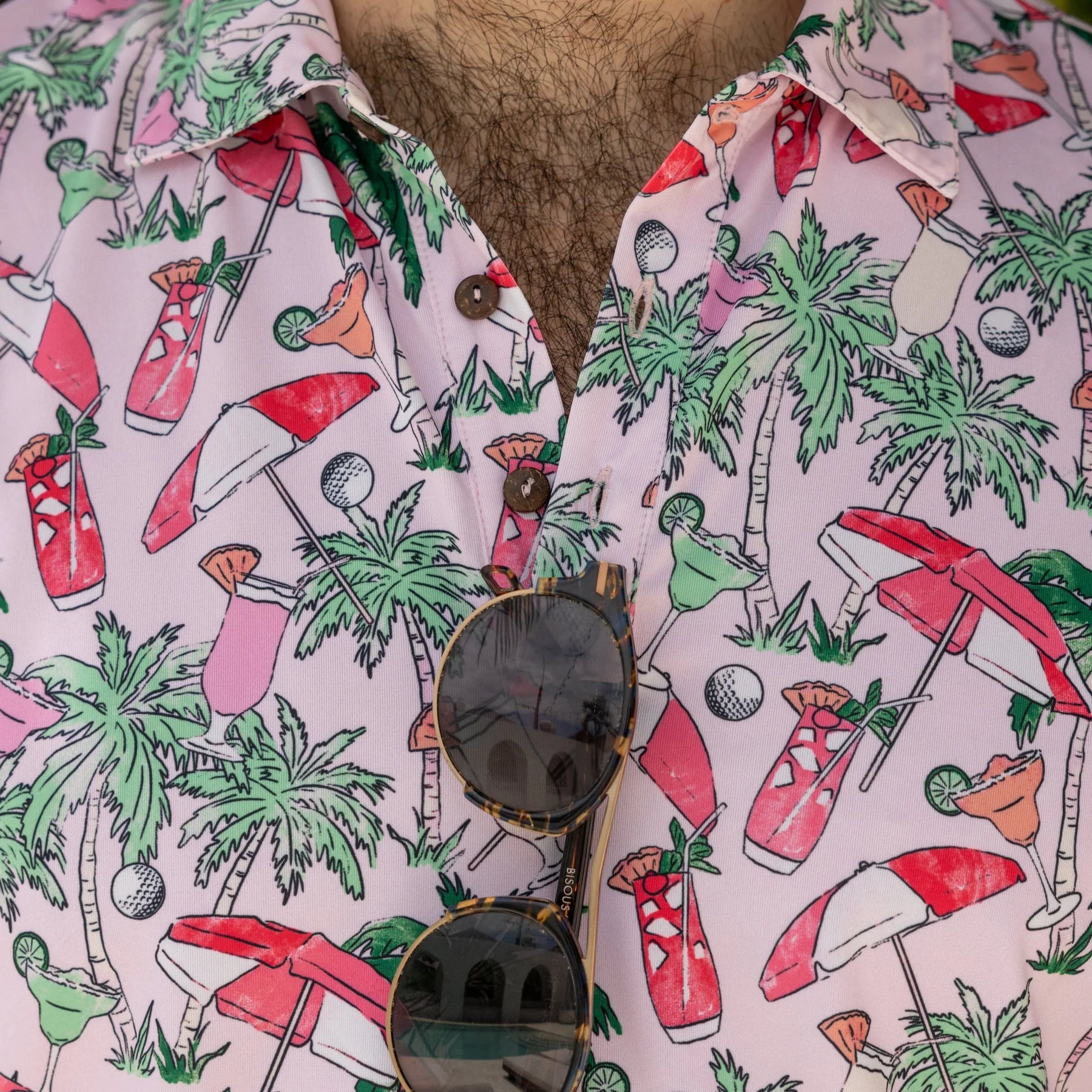 En semestergolfskjorta som ingen annan från Kenny Flowers. Med motiv av palmer drinkar och parasol kommer du göra succé på både golfbanan och grillfesten.
